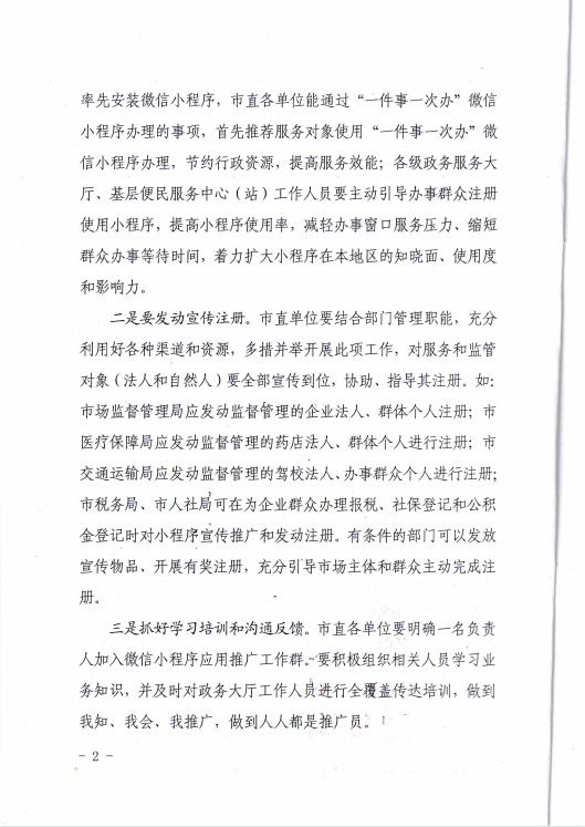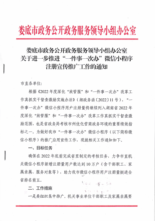 关于进一步推进“一件事一次办”微信小程序注册宣传推广工作的通知